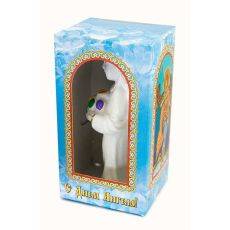 Фигура Ангела выполнена из керамики и покрыта белой глазурью, нимб покрыт золотом. Образ соответствует описанию Ангела, как "юноши в блистающих одеждах". В правой руке он держит крест, как символ спасения, а в левой - меч, как орудие против власти тьмы. В жизни для каждого христианина его Ангел Хранитель, данный ему при крещении, - это верный друг, неусыпный страж и попечитель о его христианской душе. Керамические изделия этой мастерской выпускаются с 1993 г. Художественное решение базируется на традициях мировой культуры, каменной и деревянной резьбы, церковного шитья. До 1993 г. керамические изделия для церковных и келейных нужд имели очень ограниченное применение. Например, в каталоге известного мастера Кузнецова, выпущенном в конце XIX века, представлены только 6 изделий из фарфора. Для изготовления данных керамических изделий применяется фаянсовая масса, сертифицированная для изготовления пищевой посуды.