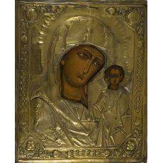 Казанская икона Божией Матери. Икона писаная (Кж) 23х29, в ризе, 19 век