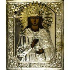 Варвара, великомученица. Икона писаная 23х28, в ризе, 19 век