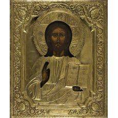 Господь Вседержитель. Икона писаная 26х31, в ризе, конец 19 - начало 20 века