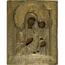 Тихвинская икона Божией Матери. Икона писаная 14х19, в ризе 19 века