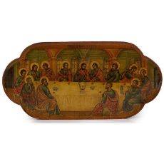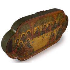 Тайная вечеря. Икона писаная (Ю) 44х22, цветной фон, золотые нимбы, с ковчегом, новое письмо на старой доске