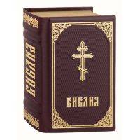 Библия. (Кожа. Позолота. Тиснение. Золотой обрез. Русский язык.Закладка. М.ф.
