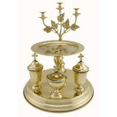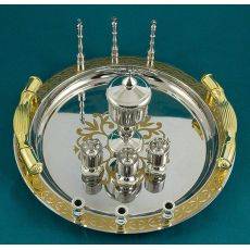 Блюдо для соборования латунное с подстаканником и семью подсвечниками.
