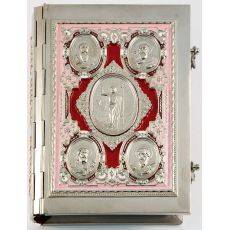 Евангелие в цельнометаллическом окладе. (Среднее. 16х21,5. С цветн. эмалью.)