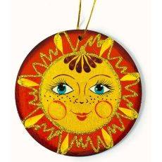Сувенир рождественский деревянный, ёлочное украшение плоское, Русская сказка, с цветной росписью, 24070 игрушка: солнышко