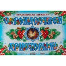 Гирлянда бумажная рождественская, "С Рождеством Христовым!", с иконой, длиной 2 м 80 см, ГР-7873