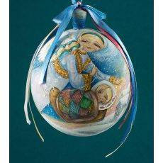Сувенир рождественский деревянный, Шар. Метелица - елочная игрушка, с авторской ручной акриловой росписью, диаметром 10 см, в ассортименте Зимняя ночь, вид храма, Ангел баюкает младенца.