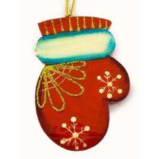 Сувенир рождественский деревянный, ёлочное украшение простое, в ассортименте, с цветной росписью, 10202 игрушка: варежка