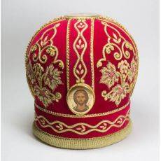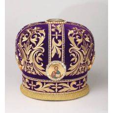Митра №005 бархат вышивка ам канитель 5юв.икон стр.дорожки в футляре