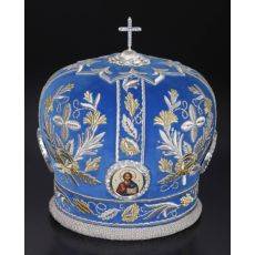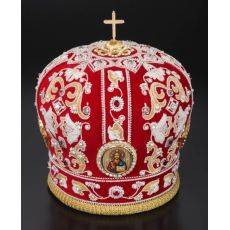Митра №018 глазет вышивка ам вышитые иконы, юв.крест в футляре