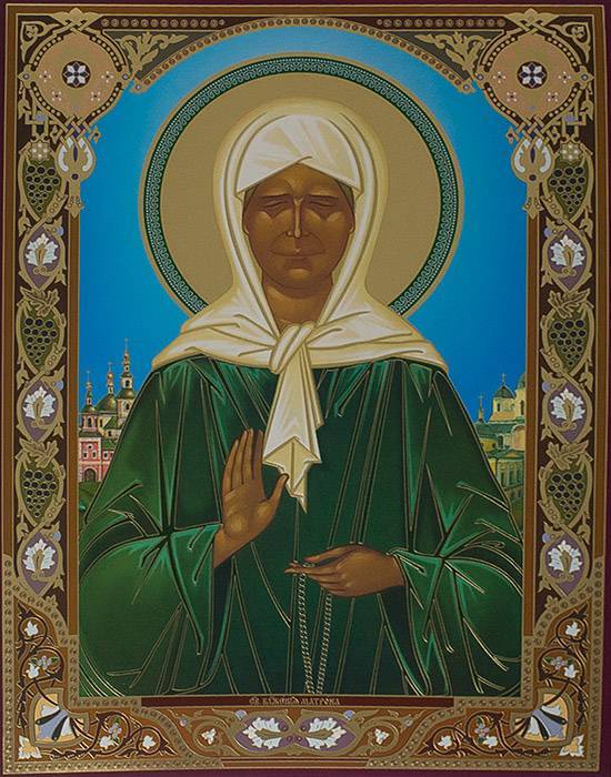 Икона бумажная 30х40, с тиснением, с узорной рамкой Матрона Московская, блаженная