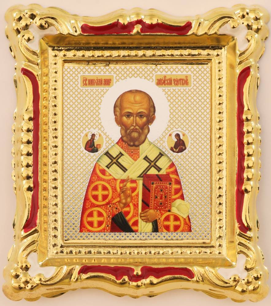 Икона в металлической рамке сплошная, на липкой ленте, эмаль, золочение