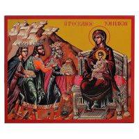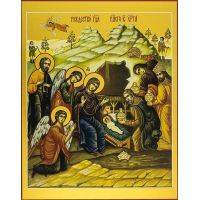 Икона на МДФ 10х12, Рождество Христово, ультрафиолетовая печать, золотой фон, без ковчега