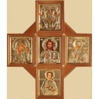 Икона в киоте 11х13 многоместная, двойное тиснение, 5 икон, резная