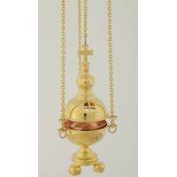 Кадило малое требное латунное , круглое, с окантовкой, с медной чашей, высотой 16 см