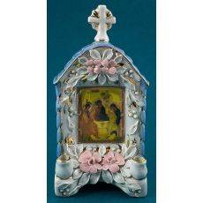 Киот фарфоровый настольный К-10 мини, 1 икона , с цветной росписью и золотом Святая Троица