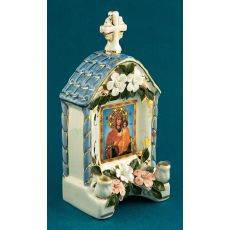 Киот фарфоровый настольный К- 6 Домик-беседка средний , с цветной росписью и золотом с иконой блаженной Матроны Московской