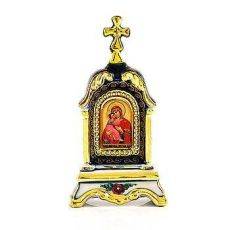Киот фарфоровый настольный К-10 мини, 1 икона , с цветной росписью и золотом Владимирская икона Божией Матери