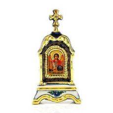 Киот фарфоровый настольный К-10 мини, 1 икона , с цветной росписью и золотом Святой Архангел Михаил