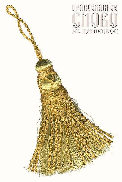 Кисть, золото, голова в оплетке, нить крученая, 15 см