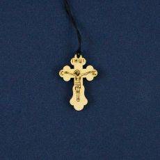 Крест нательный деревянный в форме Трилистник, с выжиганием, с гайтаном, высотой 3,5 см С распятием