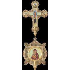 Крест-икона № 46 запрестольная выпиловка живопись золочение камни эмаль