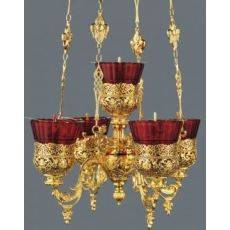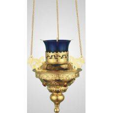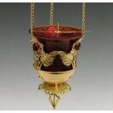 Лампада подвесная латунная "Каскад", без стакана, с эмалью со сканью, с золочением, высотой 18 см