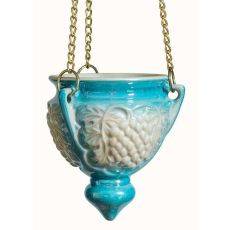 Лампада подвесная керамическая мини, с эмалью, позолотой и цепями