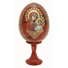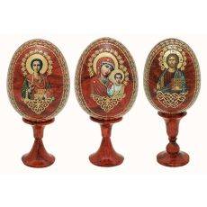 Яйцо пасхальное деревянное на подставке, с иконой, цветное, "под мрамор", на подставке, высотой (без учёта подставки) 8 см