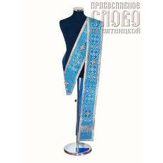 Орарь голубой с золотом, двойной, бархат, вышивка, длина 147 см
