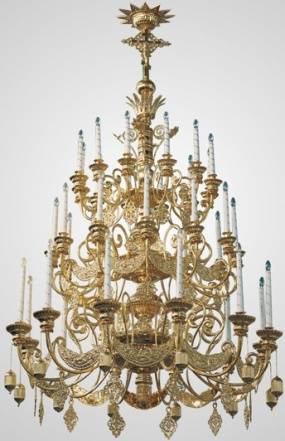 Паникадило 3 яруса 36 свечей чеканное золочение