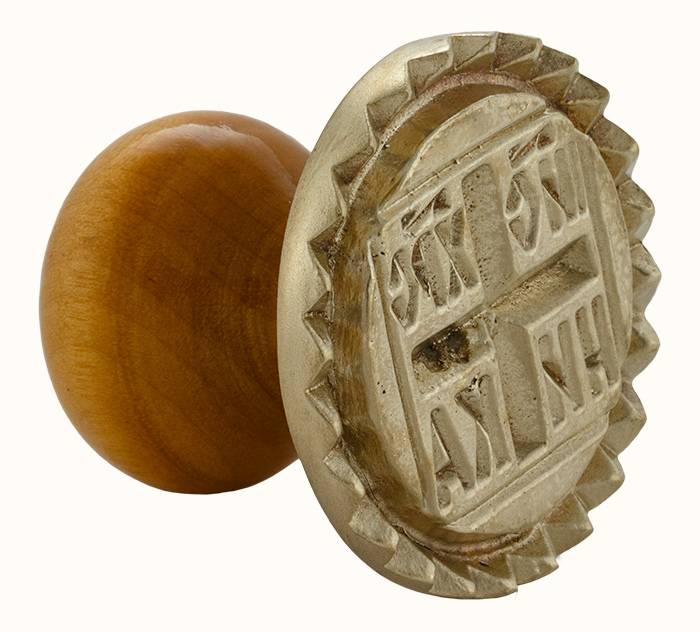 Печать для просфор "Агничная - НИКА" с зубчатой каймой. Диаметр 48 мм, латунь, деревянная ручка П.П.10.2.