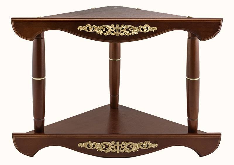 Полка для икон деревянная угловая, № 50, 2-ярусная, с узором, Х30525