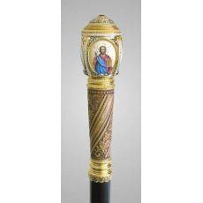 Жезл архиерейский с литым оглавием №5 золочение рутений в футляре