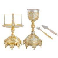 Потир 1 л греческий с принадлежностями, двухцветный, с барельефами, литыми и ажурными фрагментами, чеканным узором, с с. стаканом