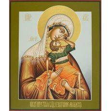 Умиление икона Божией Матери. Икона писаная (Шун) 21х25х3,8, цветной фон, золотой нимб, с ковчегом