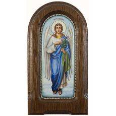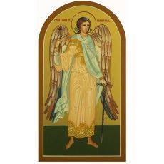 Ангел Хранитель. Икона писаная 13,5х26х3 см, золотой фон, без ковчега, арочная, ростовая (Ю)