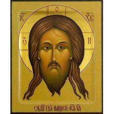 Нерукотворный Образ Спасителя. Икона писаная 20х24, цветной фон, золотой нимб, с ковчегом
