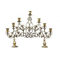 Семисвечник напрестольный, латунный шириной 50 см, на 2-х ножках