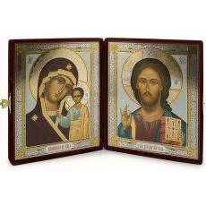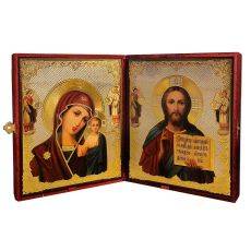 Складень бархатный 30х17 см, двойной, с иконой Спасителя и Казанской иконой Божией Матери (11х13 см), с багетной рамой (1113Р01-14) (К)