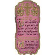 Листок - скрижаль бумажный (закладка), ламинированный, с тиснением, в ассортименте № 33 С молитвой Любимому Святому и молитва Святому имя которого носишь.