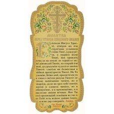 Листок - скрижаль бумажный (закладка), ламинированный, с тиснением, в ассортименте (в уп.- 25 шт. одного вида) № 27 С молитвами Св. Иоанну Новому, Сочавскому о помощи в торговле и его иконой.