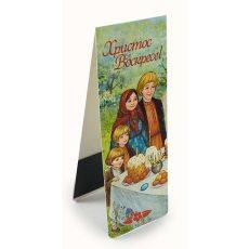 Закладка книжная бумажная двойная, с магнитом, пасхальная, Семья за столом, 3,5 х 9,5 см , зк35022