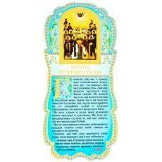 Листок - скрижаль бумажный (закладка), ламинированный, с тиснением, в ассортименте (в уп.- 25 шт. одного вида) № 18 С молитвой о защите от чародейства и злых сил, с иконой сщмч. Киприана и мч. Иустины.