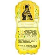 Листок - скрижаль бумажный (закладка), ламинированный, с тиснением, в ассортименте № 25 С молитвой Святителю Луке (Войно-Ясенецкому), Крымскому и его иконой.