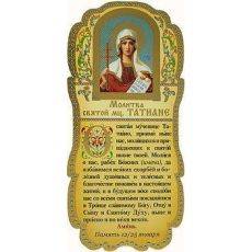 Листок - скрижаль бумажный (закладка), ламинированный, с тиснением, в ассортименте № 38 С молитвой Святой мученице Татиане и ее иконой.